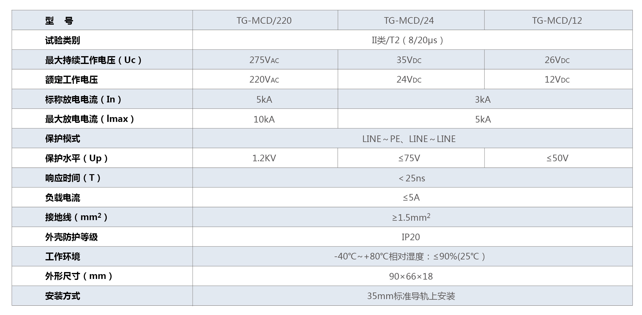TG-MCD系列低壓電源電涌保護(hù)器適用于各種低壓供電系統(tǒng)及直流配電屏、直流供電設(shè)備、直流配電箱、電子信息系統(tǒng)柜(如消防機(jī)房直流線路)等低壓交、直流電源的設(shè)備前端的(II級分類試驗(yàn)8/20us)限壓型電涌保護(hù)器。按照防雷裝置攔截效率E值確定,一般應(yīng)用于特殊需要保護(hù)的信息設(shè)備前端,用于直流保護(hù)的小功率低壓電源線路,各種設(shè)備低壓電源前端(如攝像頭電源前端)防雷裝置配置。